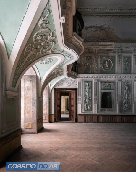 Salão de baile de um palácio abandonado na Polônia