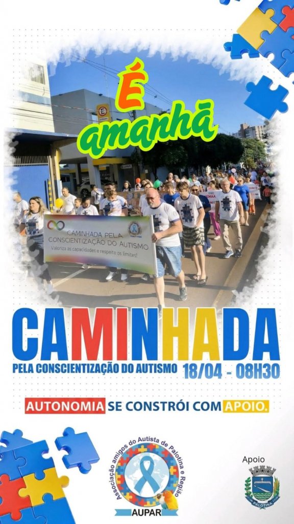 A comunidade de Palotina tem um importante compromisso neste sábado (18). A 4ª Caminhada de Conscientização do Autismo será realizada a partir das 8h30, na Praça Amadeu Piovesan, reunindo moradores em um momento de informação, respeito e inclusão.
