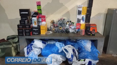 Nesta quarta-feira (06), uma operação conjunta entre a equipe ALI, Receita Federal e RPA abordou um veículo em alta velocidade nas proximidades do Posto Isa. No carro estavam quatro ocupantes e diversas mercadorias estrangeiras sem nota fiscal: celulares, perfumes, trenas, molinetes e dispositivos Fire TV Stick.