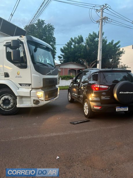 Um acidente de trânsito foi registrado na manhã desta quarta-feira (25), no cruzamento das ruas 1º de Janeiro com 1º de Maio, na rota de caminhões, em Palotina.