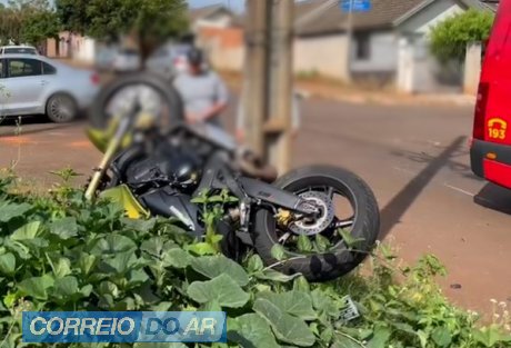 Acidente envolvendo duas motocicletas aconteceu na manhã desta segunda-feira (01), no cruzamento da Rua Albert Einstein com a Rua das Lusíadas, no bairro Interlagos.