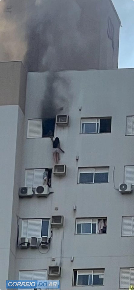 A imagem angustiante mostra Juliane apoiada sobre o ar-condicionado no 13º andar do Edifício João Batista Cunha, em Cascavel.
