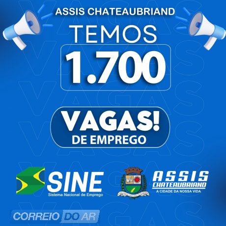 A Agência do Trabalhador - SINE de Assis Chateaubriand divulgou, nesta segunda-feira (13), que estão abertas 1.700 oportunidades de trabalho em diversas áreas. As vagas contemplam diferentes níveis de qualificação e setores, oferecendo uma excelente chance para quem busca inserção ou recolocação no mercado de trabalho.