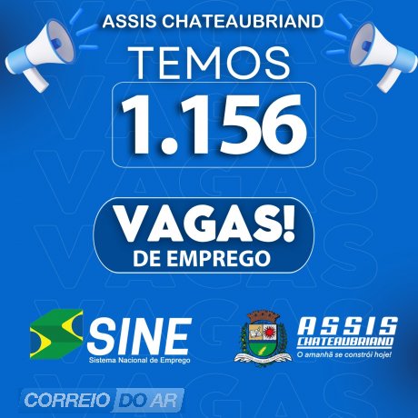 A Agência do Trabalhador - SINE de Assis Chateaubriand divulgou, nesta quarta-feira (6), que estão abertas 1.156 oportunidades de trabalho em diversas áreas. As vagas contemplam diferentes níveis de qualificação e setores, oferecendo uma excelente chance para quem busca inserção ou recolocação no mercado de trabalho.