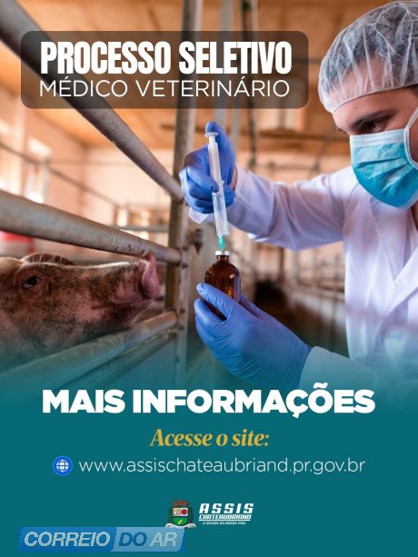 Publicado no diário oficial do município de Assis Chateaubriand na sexta-feira(13), o edital nº 017/2026, do Processo Seletivo Simplificado- PSS 02/2026 para a contratação e formação de cadastro de reserva de Médico(a) Veterinário(a), 40 (quarenta) horas, por prazo determinado, para o desenvolvimento das atividades descritas no Acordo de Cooperação Técnica (ACT) celebrado entre o Município de Assis Chateaubriand e o Ministério da Agricultura, Pecuária e