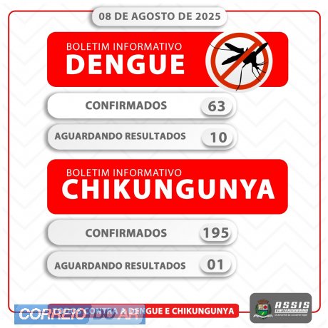 A Secretaria de Saúde de Assis Chateaubriand divulgou, nesta sexta-feira (8), uma atualização do boletim epidemiológico com os dados mais recentes sobre os casos de dengue e chikungunya no município. As informações contemplam o atual ano epidemiológico, iniciado em 1º de janeiro de 2025, e traçam um panorama detalhado da situação local.