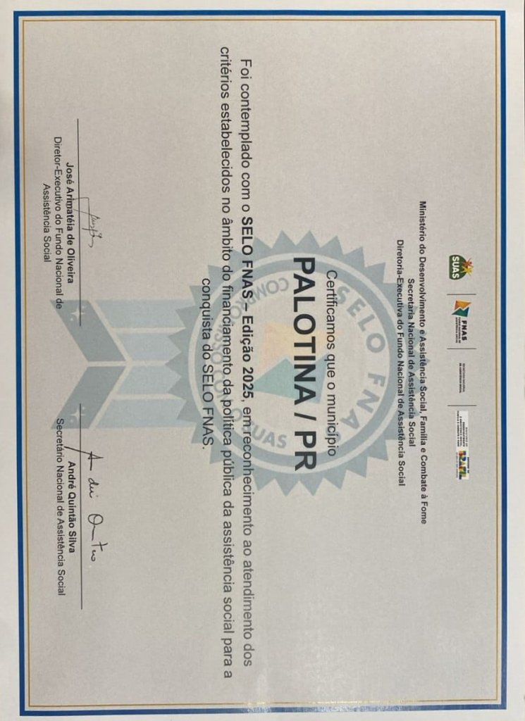 Assistência Social I Palotina conquista selo de excelência do Fundo Nacional de Assistência Social