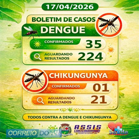 A Secretaria de Saúde de Assis Chateaubriand divulgou, nesta sexta-feira (17), o boletim epidemiológico atualizado com os números de dengue e chikungunya no município. O levantamento, que considera dados desde 1º de janeiro de 2026.