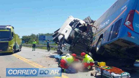 De acordo com a Polícia Rodoviária Federal (PRF), o caminhão não conseguiu parar ao se deparar com um congestionamento na rodovia. O motorista teria desviado para a pista contrária na tentativa de evitar uma batida com veículos parados, mas acabou batendo frontalmente com o ônibus.