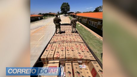 Em buscas no local, foi localizado sobre plantação de soja o caminhão com 500 caixas de cigarros. Estima-se prejuízo ao crime de R$ 1,5 milhão.