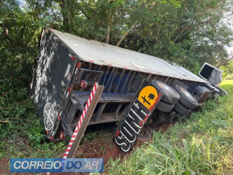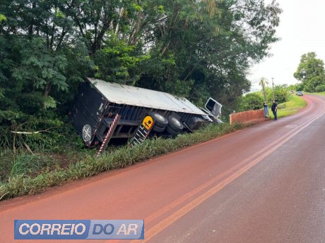 Caminhão sai da pista após manobra para evitar colisão na PR-589 em Nova Santa Rosa