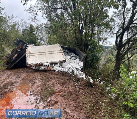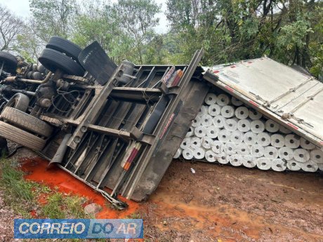 Um acidente de trânsito do tipo tombamento foi registrado nesta segunda-feira (25), às margens da rodovia PR-182, local conhecido como serra de Manfrinópolis - divisa com Francisco Beltrão, no Sudoeste do Paraná - envolvendo um caminhão baú Mercedes-Benz, carregado com pacotes de papel higiênico.