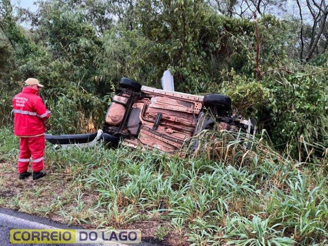 Capotamento impressionante durante chuva forte deixa motorista ferido na PR-488