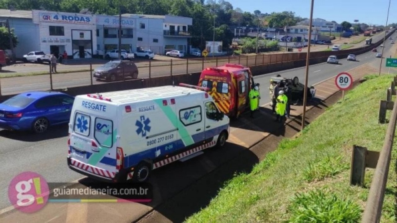 Carro capota após colisão com caminhão na BR-277, em Medianeira