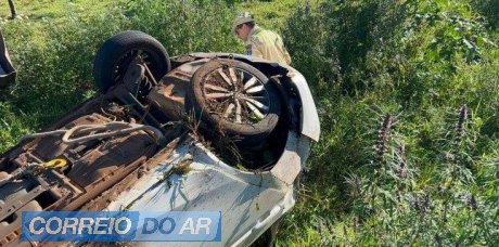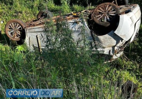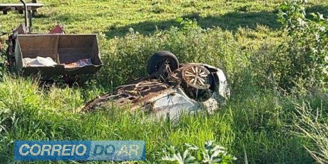 Carro capota no ‘KM da Morte’ e para em propriedade rural às margens da PR-488