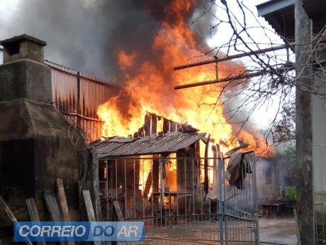 As chamas de grandes proporções consumiram completamente a casa. Rapidamente, o Corpo de Bombeiros foi acionado para combater o fogo.