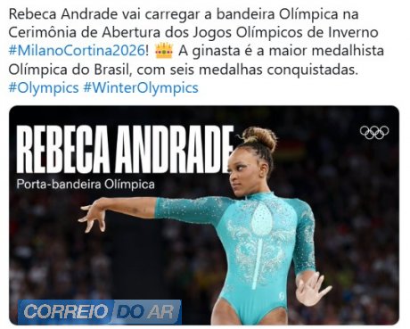 Os Jogos Olímpicos de Inverno Milão-Cortina começam oficialmente nesta sexta-feira (6) na Itália, com a realização da cerimônia de abertura, a partir das 16h (horário de Brasília), no Estádio San Siro, em Milão. Maior medalhista olímpica do Brasil, a ginasta Rebeca Andrade conduzirá a bandeira olímpica ao lado de outras sete personalidades também convidadas pelo Comitê Olímpico Internacional (COI) e a organização dos Jogos. Os porta-bandeiras da delegação brasileira serão os atletas Nicole Silveira (skeleton) e Lucas Pinheiro Braathen (esqui alpino).
