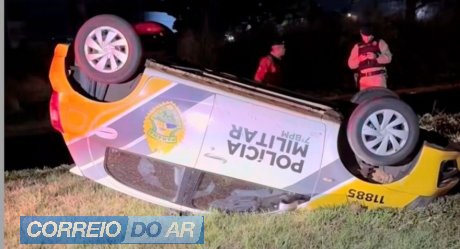 Chuva faz viatura da PM capotar na PR-317; ninguém se feriu no acidente