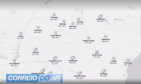 Para quinta (9), o Simepar afirma que não há previsão de chuva em praticamente todo o Paraná.