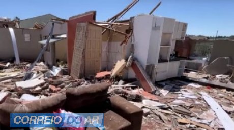 "É triste, não só pela casa do vô, mas pela cidade inteira. Quando começou a voar tudo na nossa casa, eu me ajoelhei e comecei a rezar. Peguei a Bíblia, o terço, joguei água benta. Acho que foi isso que protegeu nossa casa. Graças a Deus estamos bem", diz o menino.