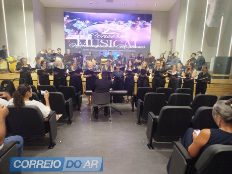 A programação contou com apresentações do Coral Municipal, do Coral Vozes Femininas e da Banda Sinfônica, proporcionando uma noite especial marcada pela sensibilidade, talento e valorização da cultura.