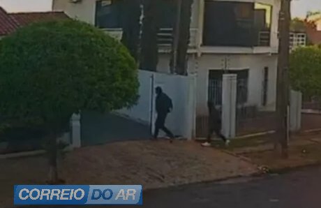 Uma câmera de segurança registrou o momento em que os assaltantes entram no imóvel e, cerca de 30 segundos depois, saem levando o veículo.
