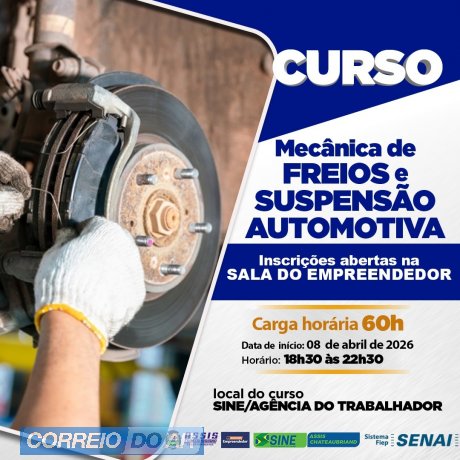 Continuam abertas as inscrições para o curso de Mecânica de Freios e Suspensão Automotiva, e devem ser realizadas na Sala do Empreendedor enquanto houver vagas disponíveis. A iniciativa é uma parceria entre o município e o Serviço Nacional de Aprendizagem Industrial (SENAI), sendo oferecida gratuitamente à população.