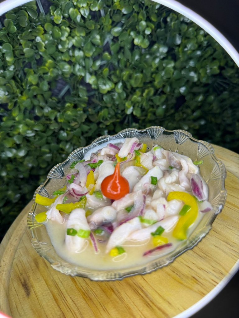 O ceviche chega leve, refrescante e cheio de personalidade, enquanto o arroz no ponto certo completa cada prato com harmonia e frescor.
