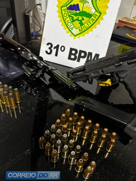 No veículo estavam dois ocupantes. Durante a revista pessoal, foram encontradas sete munições calibre .38 no bolso do condutor. Em busca veicular, os policiais localizaram um revólver calibre .357 carregado com seis munições calibre .38, totalizando 13 munições do mesmo calibre, e uma pistola calibre 9mm sem registro no sistema SESP, municiada com 17 cartuchos, além de um segundo carregador contendo mais 17 munições.