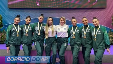 O Brasil fechou a participação na etapa de Portimão (Portugal) da Copa do Mundo de ginástica rítmica com a conquista de três medalhas de ouro. A primeira medalha dourada do conjunto formado por Maria Eduarda Arakaki, Nicole Pircio, Bárbara Galvão, Mariana Gonçalves, Maria Paula Caminha e Ana Luiza Franceschi veio no último sábado (10) no all-around, que consiste na soma das notas das séries mista e simples de uma competição.