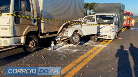 Grave acidente com oito veículos deixa Fusca destruído e trabalhador da rodovia atropelado no Paraná