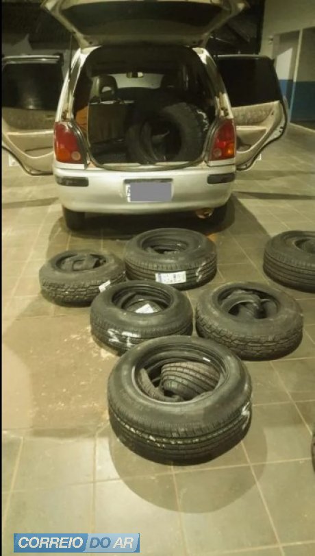 Após breve acompanhamento, o veículo foi alcançado. Durante a vistoria, os agentes encontraram 51 pneus de origem estrangeira, provenientes de descaminho.