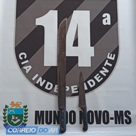 Um homem de 44 anos foi preso na manhã de domingo (8) após ameaçar um vizinho com duas armas brancas, um facão e uma faca, no bairro Copagril, em Mundo Novo.