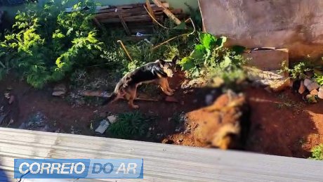 Em vídeos compartilhados pela Guarda Municipal, é possível ver um cachorro morto e dois vivos em situação de maus-tratos, com um deles debilitado. Os três cachorros são da raça pastor-alemão.