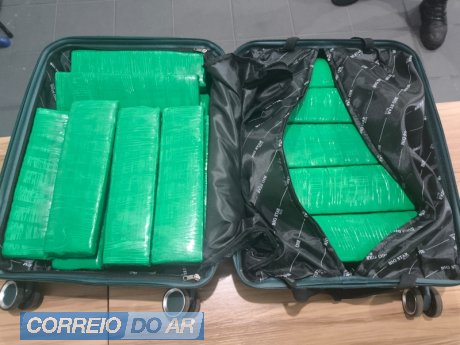 Na revista, os agentes localizaram aproximadamente 16 quilos de substância análoga à maconha, distribuídos em diversos volumes dentro da bagagem do suspeito.
