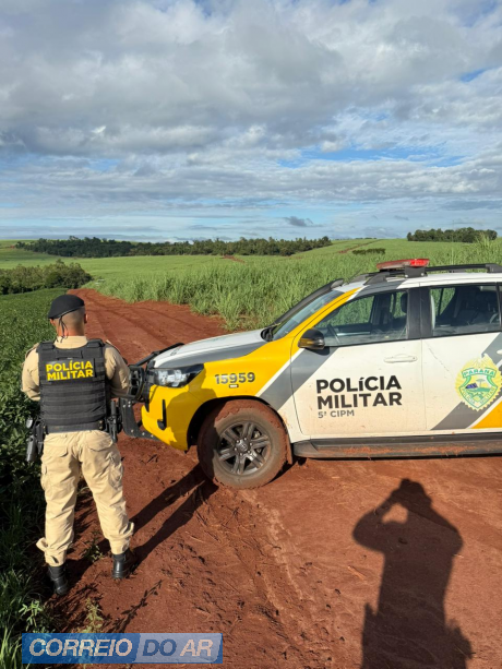 O Ford Del Rey foi encontrado na área rural e deve ser encaminhado para a perícia. A ocorrência segue em andamento, com atuação conjunta da Polícia Militar e da Polícia Civil, por meio da Delegacia da Mulher, que avalia o acionamento de unidades especializadas (Grupo Tigre) para apoio às buscas.