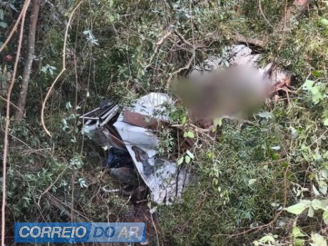O veículo desceu desgovernado pela ribanceira, colidiu contra uma árvore e tombou em seguida.