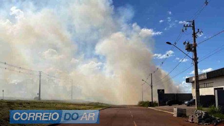 Incêndio em vegetação atingiu as margens da rodovia PR-486 na tarde de quinta-feira (8), em Cascavel, no Oeste do Paraná. A fumaça intensa chamou a atenção e pôde ser vista de longe.