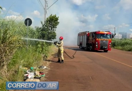 Equipes do Corpo de Bombeiros atuaram no local e controlaram as chamas com o apoio do Siate e de dois caminhões ABTR (Auto Bomba Tanque e Resgate).