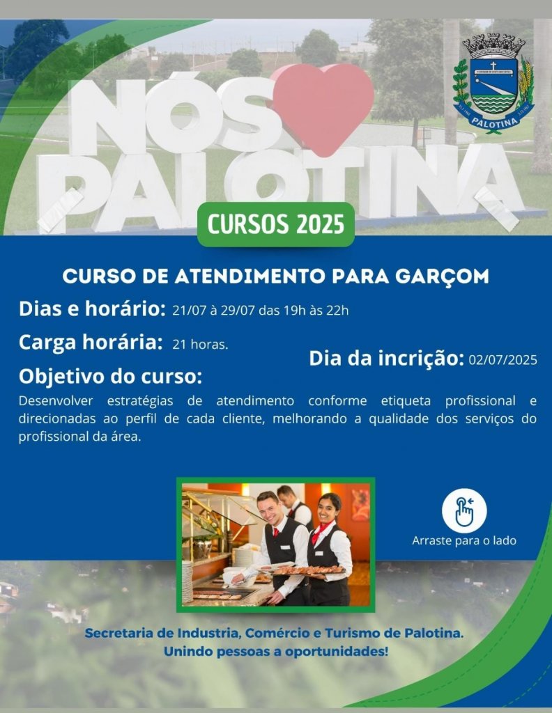 A Faculdade do Trabalhador de Palotina continua recebendo inscrições para o curso de Atendimento para Garçom, voltado a profissionais que já atuam na área e desejam aprimorar suas técnicas de atendimento, alinhadas às normas de etiqueta profissional e direcionadas aos diferentes perfis de clientes.
