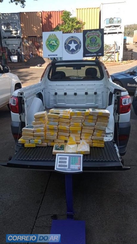 O entorpecente estava escondido em compartimentos ocultos na caçamba de uma caminhonete Fiat Strada, de cor branca. O veículo foi abordado pelas equipes no âmbito da Operação Protetor de Divisas e Fronteiras.