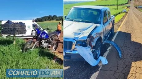 Um grave acidente foi registrado na manhã desta segunda-feira (2), por volta das 8h, na rodovia Florindo Piccoli, no trecho conhecido como Bela Vista, entre o município de Cambira e o distrito de Sete de Maio, sentido Novo Itacolomi. A colisão envolveu uma motocicleta Yamaha XTZ e uma caminhonete Ford Ranger prata, com placas de Novo Itacolomi.