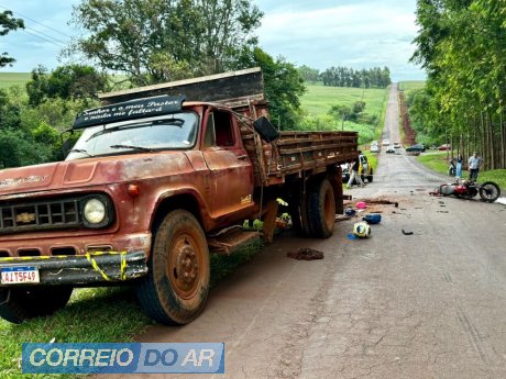 Um grave acidente de trânsito tirou a vida de um jovem motociclista no fim da tarde de quarta-feira (15), em Maripá. A batida frontal envolveu uma motocicleta e um caminhão Chevrolet em uma estrada secundária próxima ao Lago Municipal, no trecho que dá acesso à PR-182, sentido Palotina.