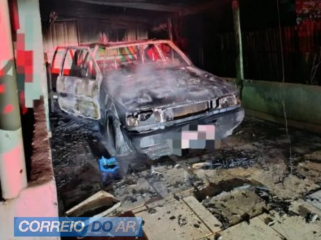 A equipe policial constatou no local, que um veículo, que estava na garagem, havia sido incendiado, causando danos ao automóvel e à cobertura da casa.