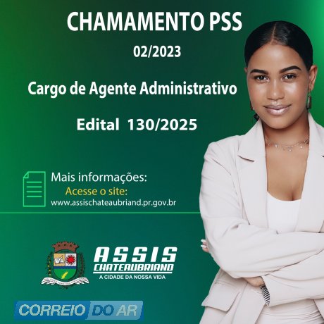 O município de Assis Chateaubriand publicou nesta quinta-feira (6) a convocação de candidatos aprovados em Processos Seletivos Simplificados (PSS) para o cargo de Agente Administrativo. O edital PSS nº 130/2025 publicado no diário oficial, refere-se à 75ª convocação do PSS 02/2023.