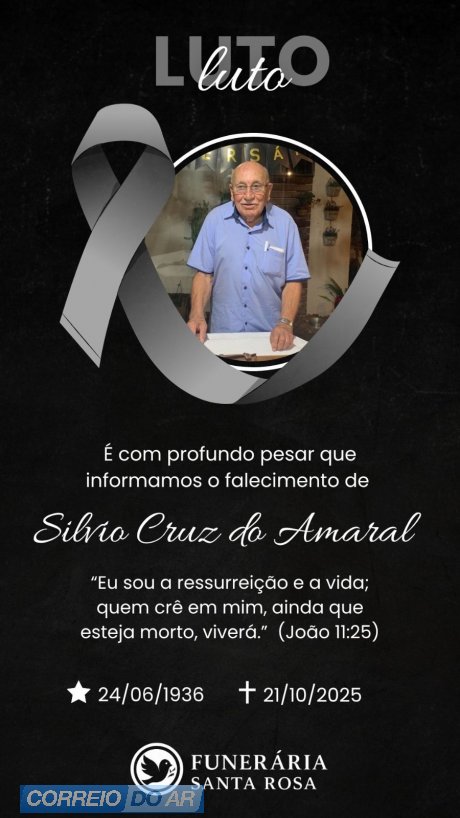A Funerária Santa Rosa de Palotina comunica, com pesar, o falecimento do senhor Sílvio Cruz do Amaral, ocorrido aos 89 anos de idade.