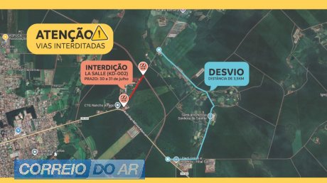 O avanço das obras do contorno viário de Palotina vai exigir a interdição do trânsito na rodovia KD 002, nas proximidades da comunidade de La Salle, no interior do município. A interrupção está programada para os dias 30 e 31 de julho para permitir que a construtora Castilho conclua o asfaltamento de um trecho da rotatória alongada próximo à La Salle.