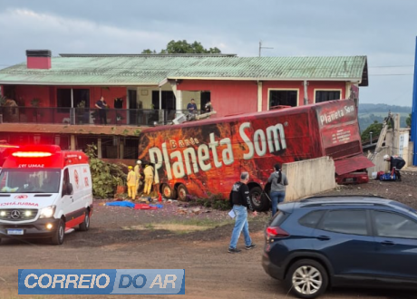 Ônibus de banda atinge casa após colisão na BR-158 e acidente deixa um morto em Pato Branco