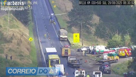 De acordo com informações preliminares, o micro-ônibus da saúde, pertencente ao município de Campina Grande do Sul, tombou após a colisão. Com o impacto, uma das carretas perdeu o controle, saiu da rodovia e caiu em uma ribanceira.
