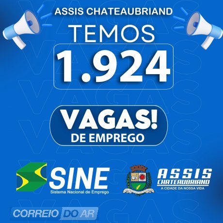 A Agência do Trabalhador - SINE, de Assis Chateaubriand, anuncia a disponibilidade de 1.924 vagas de emprego em diversas áreas. Essa é uma excelente oportunidade para quem busca inserção ou recolocação no mercado de trabalho.